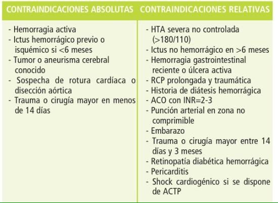 Contraindicacions absolutes i relatives per la trombòlisi en IAMCEST