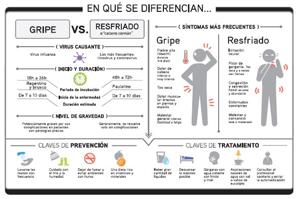 Infografia amb diferències de la grip i refredat. La prevenció del rentat de les mans és bàsic