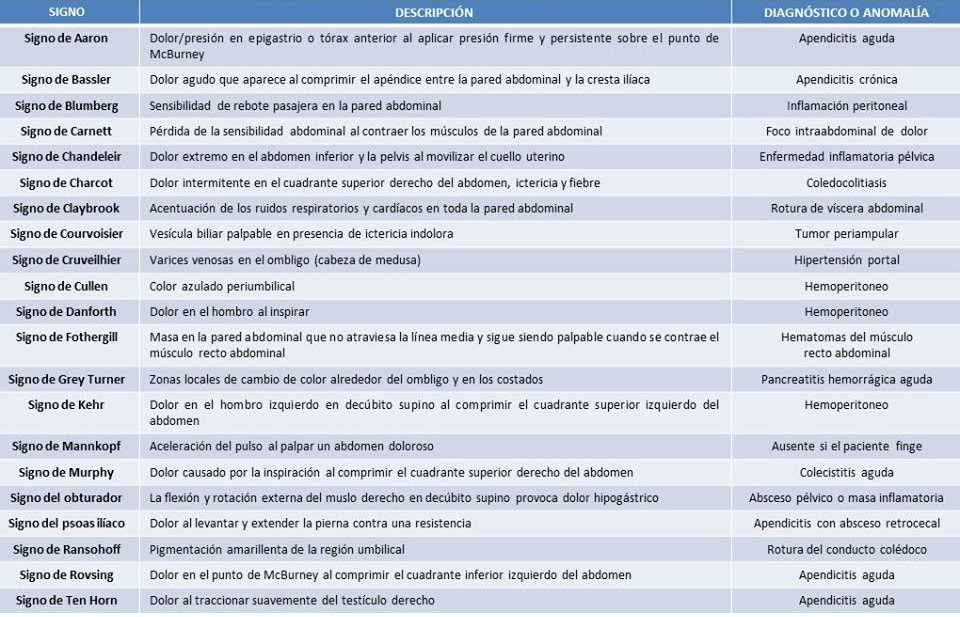 Resum dels signes abdominals i la seva traducció clínica: molt útil!
