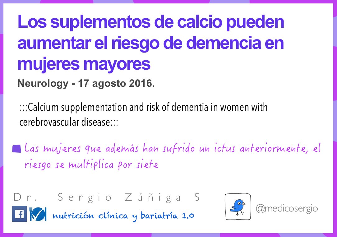 No obstante, son las mujeres que han padecido un accidente cerebrovascular o sufren otros trastornos que afectan al flujo de sangre al cerebro las que más riesgo tienen. "Es la primera vez que se muestra una relación entre los suplementos de calcio y el riesgo de demencia en mujeres mayores", han aseverado los expertos.